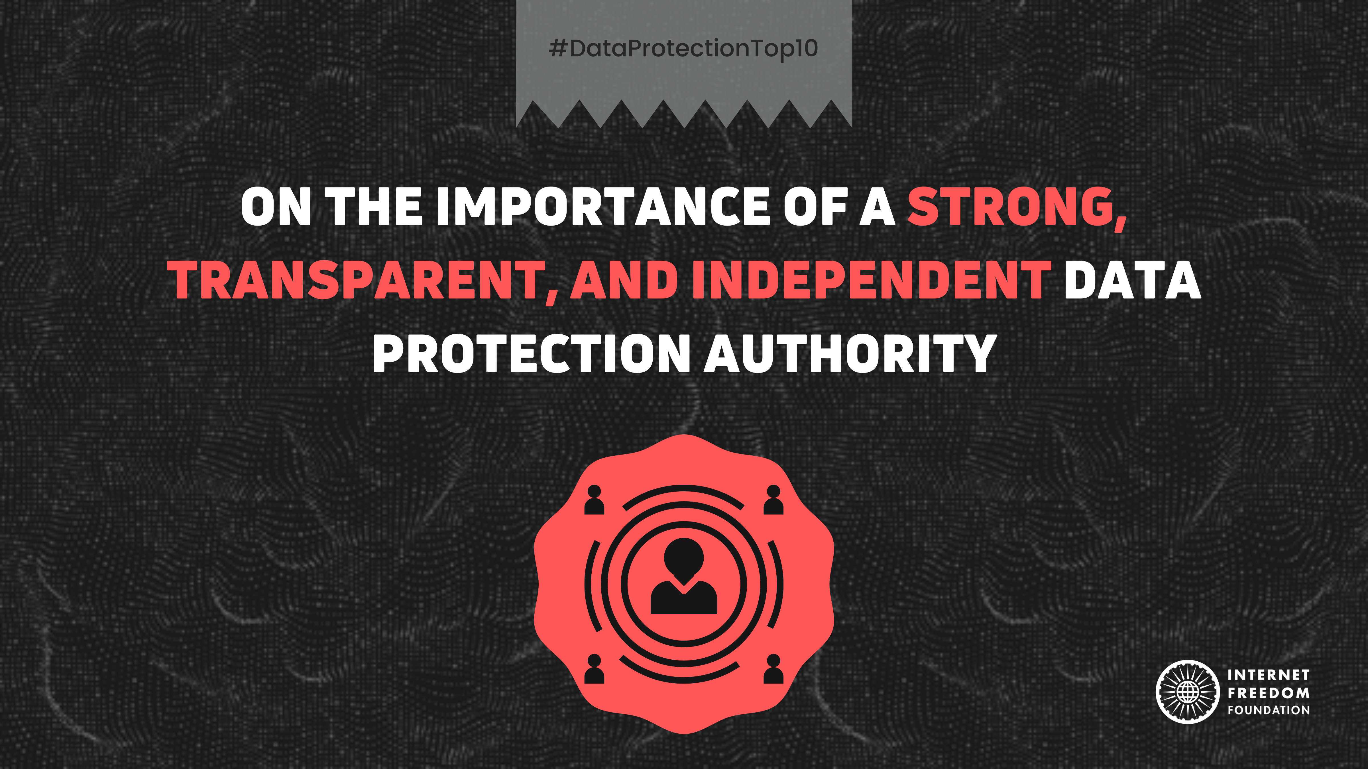 In Part 8 of the #DataProtectionTop10, we analyse the provisions in the Personal Data Protection Bill, 2019 which relate to the Data Protection Authority of India (DPA). The independence of the Data Protection Authority of India is being called into question by certain provisions in the Bill such as clause 42, wherein the Selection Committee which selects the members of the DPA are all members of the executive and clause 86 which states that the DPA shall be bound by the orders of the Central Government. We recommend that the constitution of Selection Committee be made diverse and clause 86 be deleted from the Bill.
