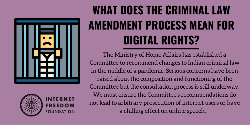 There is lack of transparency about the terms of reference for the Committee and whether its report will be prepared independently of the Ministry of Home Affairs. The Committee has also come under heavy criticism for lacking regional diversity and representation of women, dalits, adivasis, religious minorities, LGBTQIA+ persons and other marginalized identities. Further, civil society groups have warned against overhauling the country’s criminal justice system in the middle of a pandemic which has disrupted the functioning of the parliament and judiciary and taken away the public’s ability to organize protests.