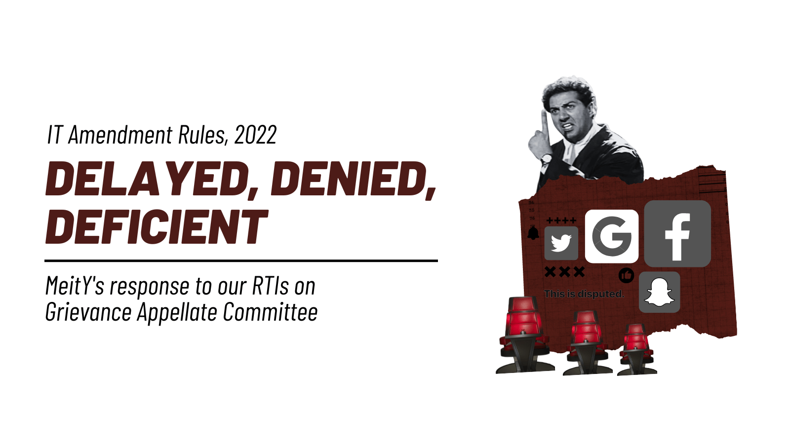 The Ministry of Electronic and Information Technology (MeitY) responded to our first appeal on the RTI application filed on March 14, 2023. Our questions pertained to the functional and operational processes of the Grievance Appellate Committees (GAC). This post summarises the Ministry’s response (or the lack thereof) to our first appeal, and elaborates on our concerns around the denial of information regarding the GAC’s functioning.