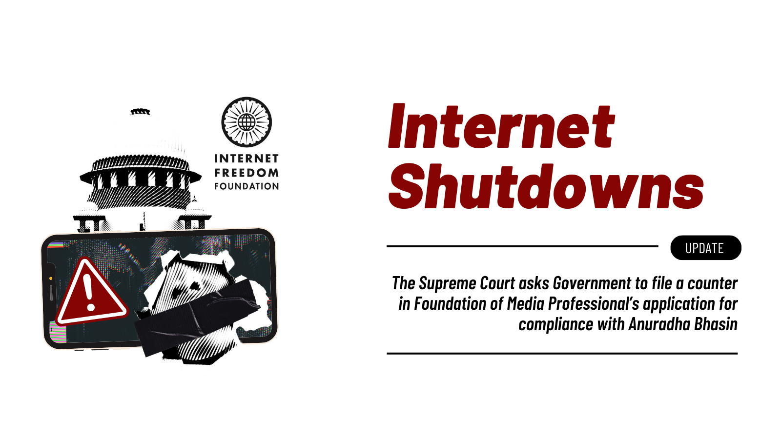 Supreme Court of India issues notice in Foundation of Media Professional’s application seeking compliance with Anuradha Bhasin Internet Shutdown Guidelines. #KeepItOn