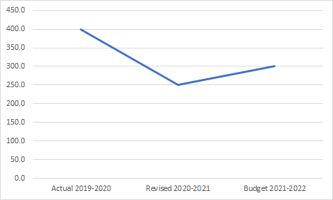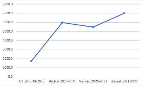An increased spend on Information and Publicity may be noticed, with Rs 460.8 crore being allocated to this (compared to Rs. 354.9 crore in the Revised Estimates of 2020-2021). However, spending on the same has fluctuated over the years. Indeed, not only were the Revised Estimates a 22% decrease over the Budgetary Estimates of 2020-2021, they were also 3% less than the actual spending in 2019-2020.