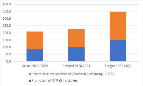 - For the Ministry of Electronics and Information Technology, this is a 75% increase over the Revised Estimates of 2020-21, which were a 2% decrease over the actual spending for 2019-20. The Revised Estimates were 19.6% less than the Budget Estimates in 2020-21.
