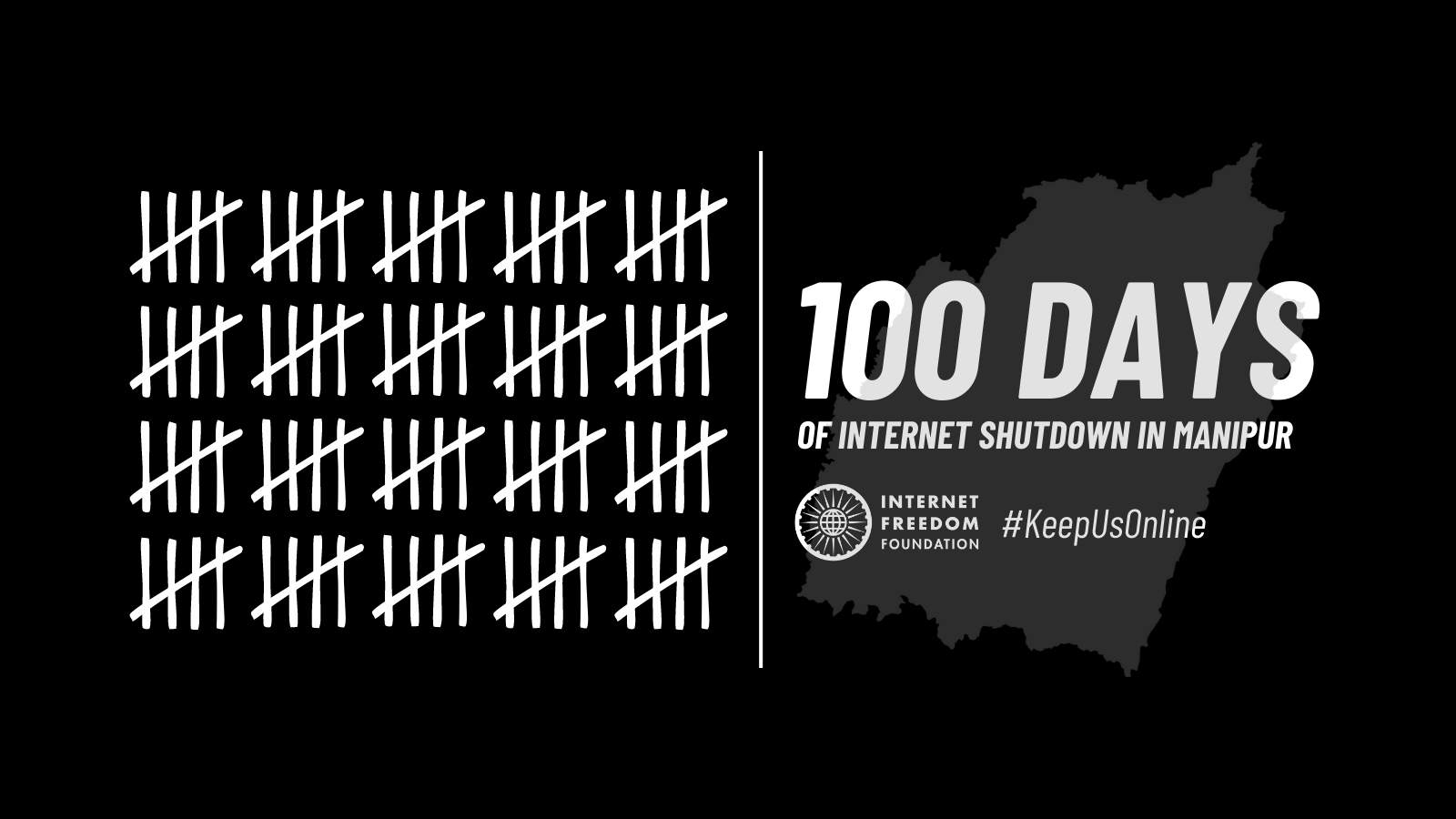 100 Days. Today, August 11, 2023, marks 100 days of Manipur’s descent into a state-wide internet shutdown. We, at IFF, are deeply saddened and perturbed by the state of affairs and how the citizens of Manipur are being deprived of their basic human rights. It contributes to the propagation of misinformation without any means for verification and hinders the accountability process for human rights violations.