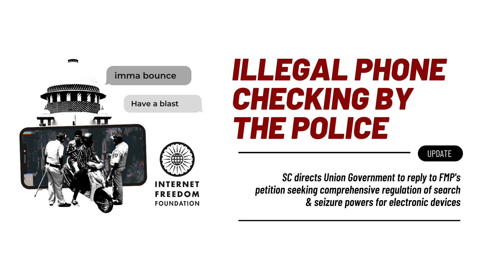 In October 2022, the Foundation for Media Professionals (‘FMP’) approached the Supreme Court seeking regulation of the police’s power to search or seize electronic devices. In the petition, they highlighted that existing laws do not regulate how authorities search or seize electronic devices. The lack of regulation enables them to engage in dubious practices, such as mandating individuals, with or without reasonable suspicion, to grant access to their mobile devices. The Supreme Court has directed the Central Government to reply to the Petition within 8 weeks. FMP was represented by Senior Advocate Siddharth Aggarwal. IFF provided legal support.