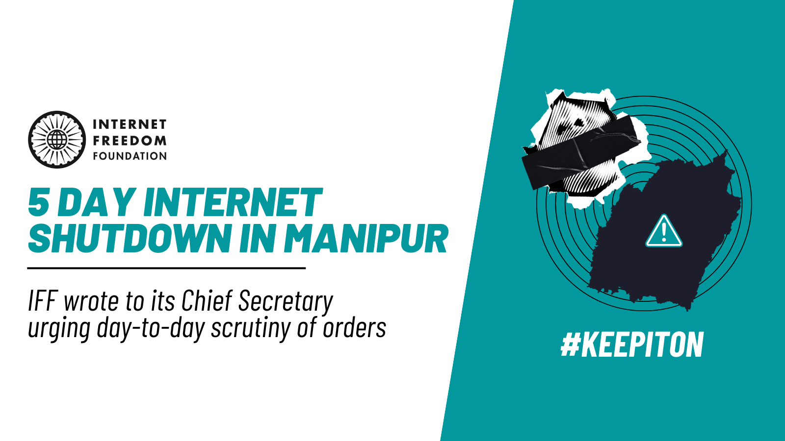 We were notified by our community that on April 27, 2023, the Commissioner (Home) of Manipur ordered an internet shutdown in two districts of Manipur for five days, because certain reported incidents of violence, and citing a possibility of false rumours and disinformation spreading through social media. Applicable Indian law requires that these orders must be reviewed by a committee of high-level government officials, to ensure that they are proportionate, lawful and necessary. We have written to the Chairperson of the Review Committee, i.e. the Chief Secretary of Manipur to review the order and consider on a day-to-day basis, whether the internet suspension needs to continue.