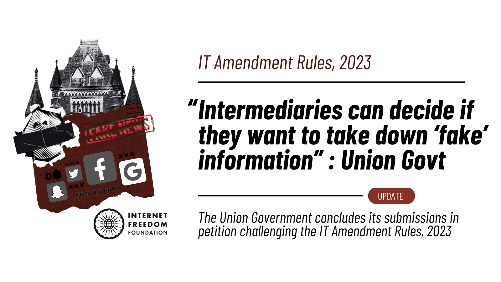 “Intermediaries can decide if they want to take down ‘fake’ information” - The Union Government concludes its submissions in petition challenging the IT Amendment Rules, 2023