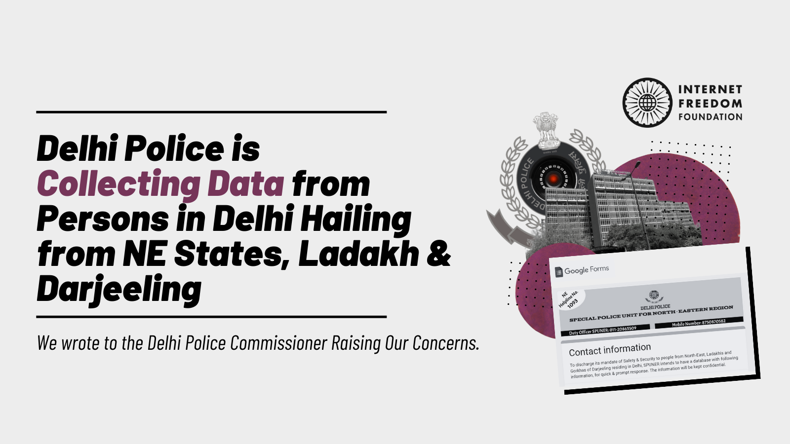 Delhi Police is Collecting Data from Persons in Delhi Hailing from NE States, Ladakh & Darjeeling. We wrote to the Delhi Police Commissioner Raising Our Concerns.