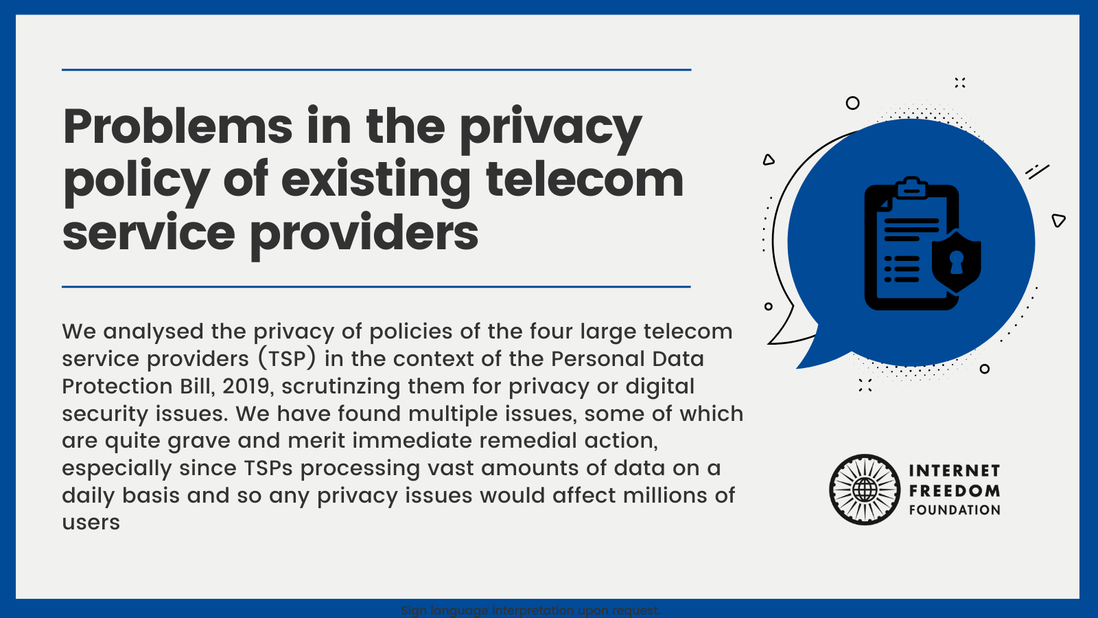 We analysed the privacy of policies of the 4 large telecom service providers to check not only whether they were Puttaswamy-compliant, but also whether they would need updating in the face of the Personal Data Protection Bill, 2019. We found certain alarming issues in these policies.