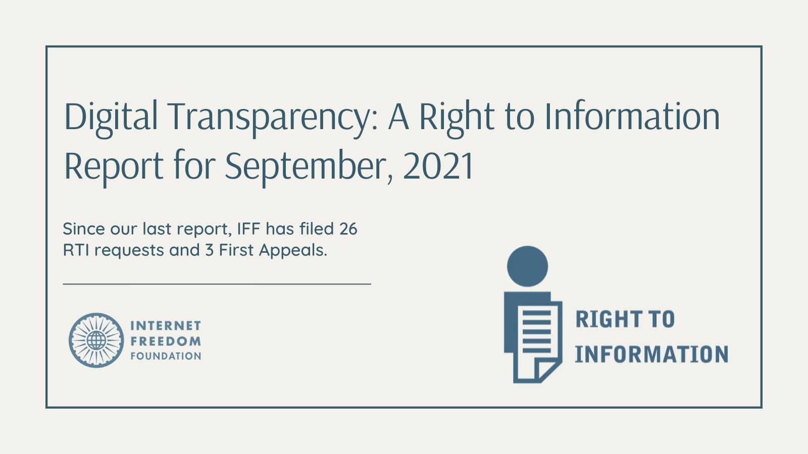 - Digital Transparency: A Right to Information report for August, 2021 dated September 06, 2021 (Link)