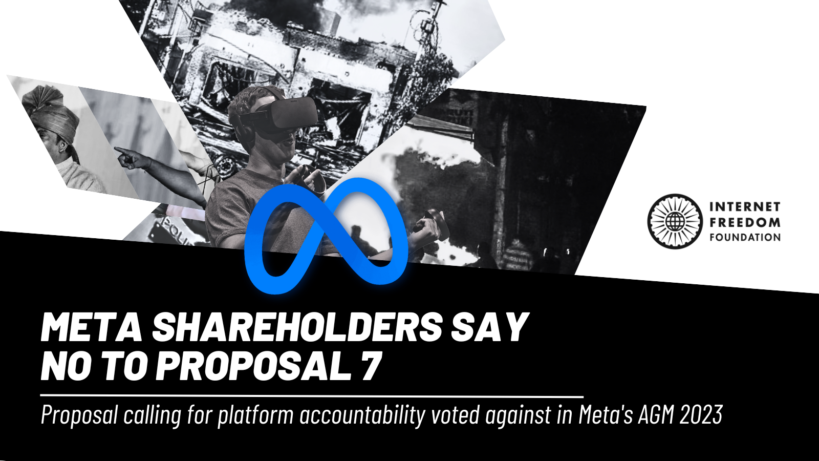 Proposal 7 titled “Assessing Allegations of Biased Operations in Meta's Largest Market” highlights allegations against Facebook for disseminating hate speech, its failure to address risks and political bias, and voices concerns around inadequate content moderation and lack of transparency in platform practices. Proposal 7, the only one out of the 13 proposals with a direct reference to India, and its voting outcome carried immense significance for the Indian audience. The voting outcome for Proposal 7 is a loss in the fight for human rights from companies like Meta whose action (on inaction) have real life implications.