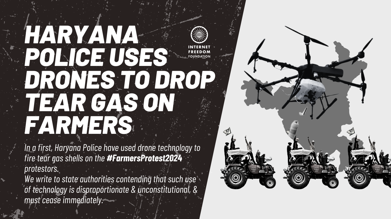 Haryana police is deploying drones to drop tear gas shells on farmers protesting near Shambhu border, violating several of their fundamental rights and compromising their health, privacy, and life. Though there is no transparency about their use or whether the drones possess surveillance technologies, privacy concerns are not far-fetched because drones used to stifle protests globally usually do. The past year has seen a worrying spike in demand for drones by Indian law enforcement agencies for policing, surveillance, and security – all in the absence of a law to regulate use of drones by the police. We wrote to the Haryana Home Department flagging our concerns and demanding that such usage be stopped immediately.