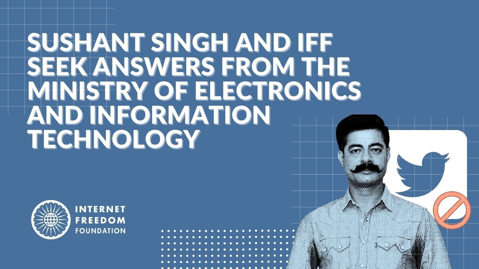 Twitter unilaterally and arbitrarily suspended the account of Sushant Singh (@sushant_says) twice, i.e. on February 1 and May 26, 2021. The first time, Twitter sent him an email stating that the account had been restricted due to a specific tweet posted on the account. However, for the second suspension, no information was or has been provided by Twitter to Mr. Singh till date. We helped him send a representation to Twitter urging an open dialogue on its policy. We also helped him file RTI requests with the Ministry of Electronics and IT (MeitY), the Department of Telecommunications (DoT) and the Ministry of Home Affairs (MHA). In their replies, DoT and MHA stated that they had no records of any such blocking and transferred the RTI to MeitY. However, Meity invoked the 2009 Blocking Rules (defined below) and an exemption under the Right to Information Act, 2005 (the RTI Act) to deny information to Mr. Singh.