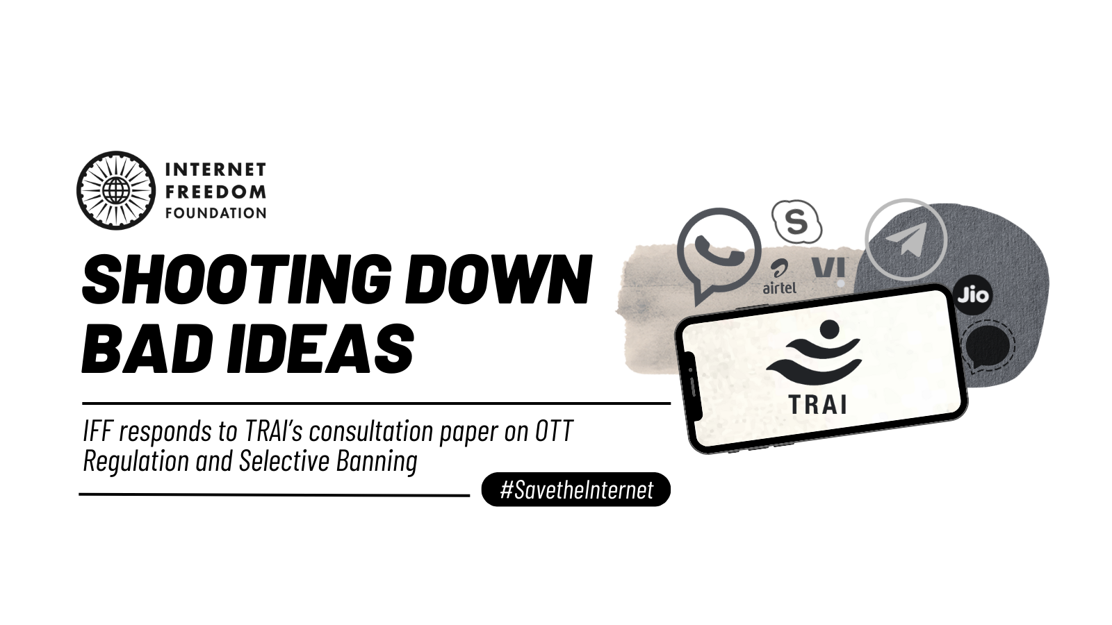 The Telecom Regulatory Authority of India (TRAI) released the consultation paper on ‘Regulatory Mechanism for Over-The-Top (OTT) Communication Services, and Selective Banning of OTT Services’ on July 07, 2023. After two extensions, the final deadline for submitting comments and counter comments were decided as September 01, 2023 and September 15, 2023 respectively. In our response, dated August 29, 2023, we highlighted our several concerns with the suggestions proposed in the consultation paper. We expressed our view against the licensing and registration of OTT communication services. We also communicated our belief that in addition to a lack of adequate evidence indicating a need for regulatory intervention, lack of a clear statutory basis or reasoning exists for TRAI to take this matter up for consultation. We also expressed apprehension on the suggestion to selectively ban OTT services, given its ad-hoc, non-transparent, ambiguous, infeasible, and impractical application, and the negative consequences it may have of user choice and freedom.