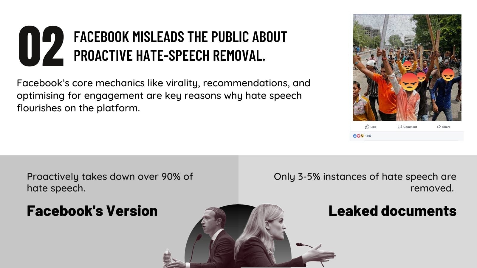 Facebook is also aware that its core product mechanics such as virality, recommendations and optimising for engagement are a significant reason why misinformation and hate speech flourishes on their platforms with almost 1-1.5 million misinformation impressions in India per hour due to reshares.