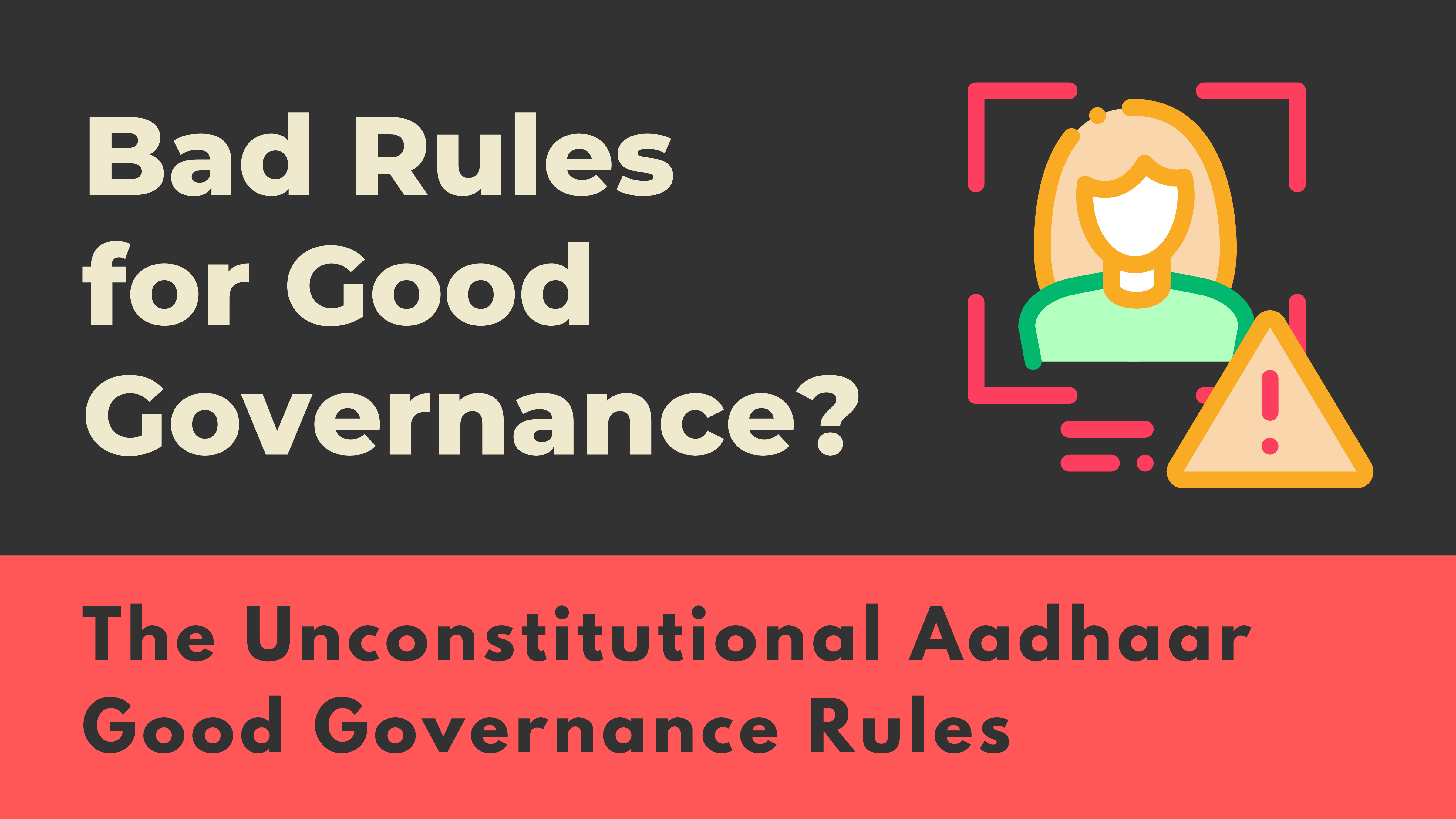 We explain why the Aadhaar Good Governances Rules are unconstitutional as they exceed the limits of the Aadhaar Act, violate the Puttaswamy judgement and proportionality test, and are vague and non-voluntary. We have petitioned the Committees on Subordinate Legislation to review the Rules.