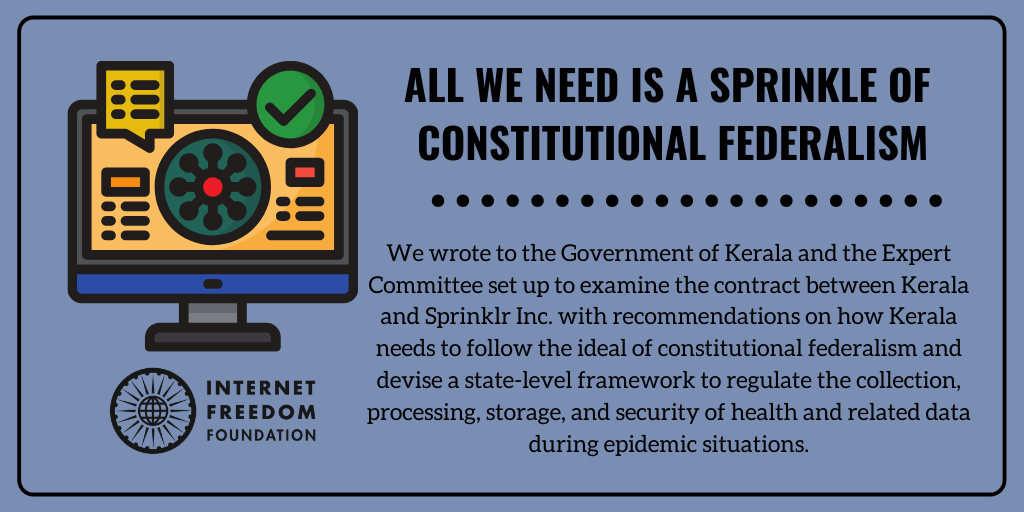 We wrote to the Kerala Government and the Expert Committee formed on the Sprinklr Inc. Data Protection issue in Kerala highlighting the need for preserving the ideal of Constitutional Federalism #SaveOurPrivacy