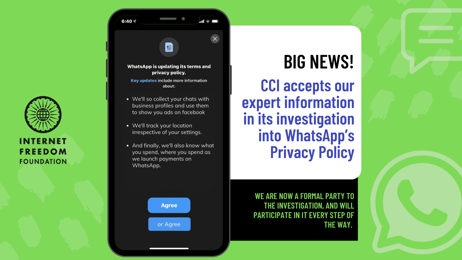 Remember when WhatsApp rolled out its revised Privacy Policy in January 2021 and tried to force users to accept it? In response, the Competition Commission of India (‘CCI’) directed an investigation on whether WhatsApp was abusing its dominant position. WhatsApp and Facebook filed a petition in the Delhi High Court against CCI’s decision to investigate. On April 22, 2021, a single judge of the Delhi High Court dismissed the petition. Now another bench of the Delhi High Court comprising of two judges has upheld the order of the single judge. Because of the decision, the CCI can now continue investigating WhatsApp’s Privacy Policy and since we are one of the parties before the CCI, we will provide assistance at every step of the investigation.