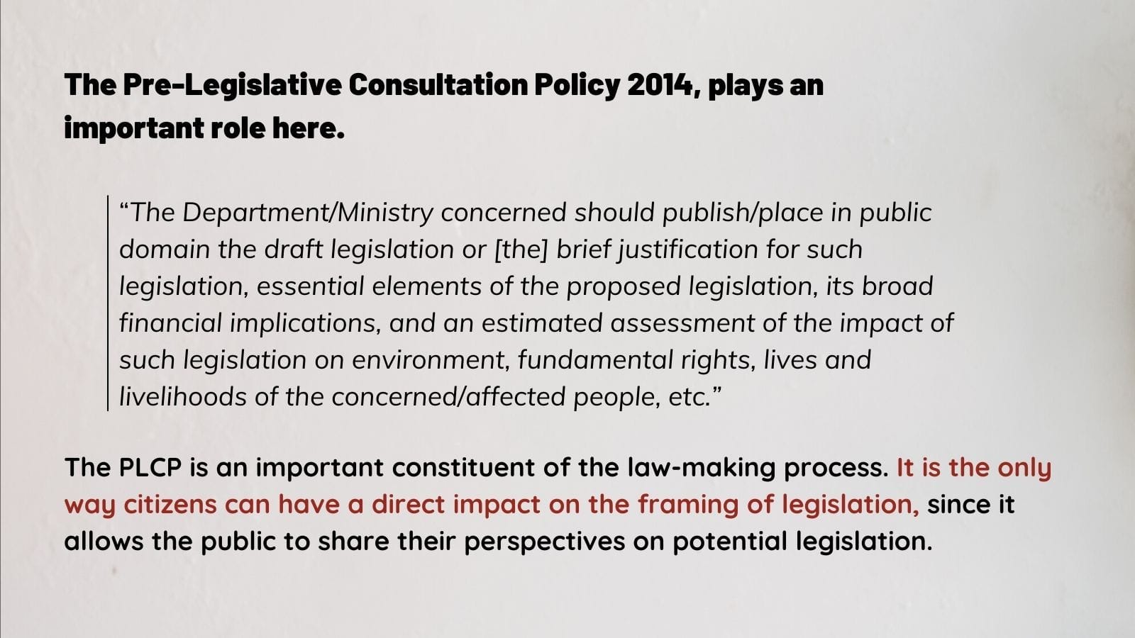 In line with the Pre-Legislative Consultation Policy, 2014 (PLCP),