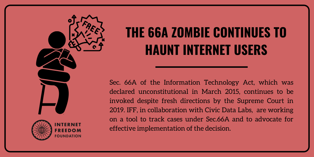 We are committed to erasing Section 66A from every FIR and criminal case all across India, irrespective of the person who is being prosecuted. The journey of S. 66A highlights the importance and challenges of monitoring and ensuring compliance with the final decisions of the Supreme Court. To meet this challenge we have come up with a data driven, evidence based solution in partnership with CivicData Labs. We will be working in partnership with CDL to build a tool to track cases under S. 66A at the district level between 1st January 2008 till 15th February 2020. We intend to analyse the data to identify and highlight the gaps in the system, put forth recommendations and advocate for a stronger, more accountable and transparent system. S. 66A must die a complete constitutional death.