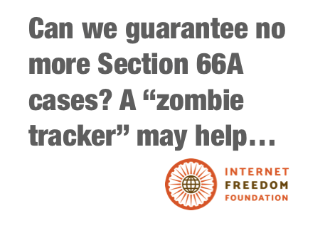 To completely fix this we have come up with a tech-dev solution in partnership with CivicData Labs (check them out here). It will primarily query any fresh Section 66A cases on a monthly basis providing not only research insight but the basis for future advocacy actions to completely eradicate it from police stations and court rooms in India. We have called this the "Zombie Tracker" and submitted it for the Agami Challenge.