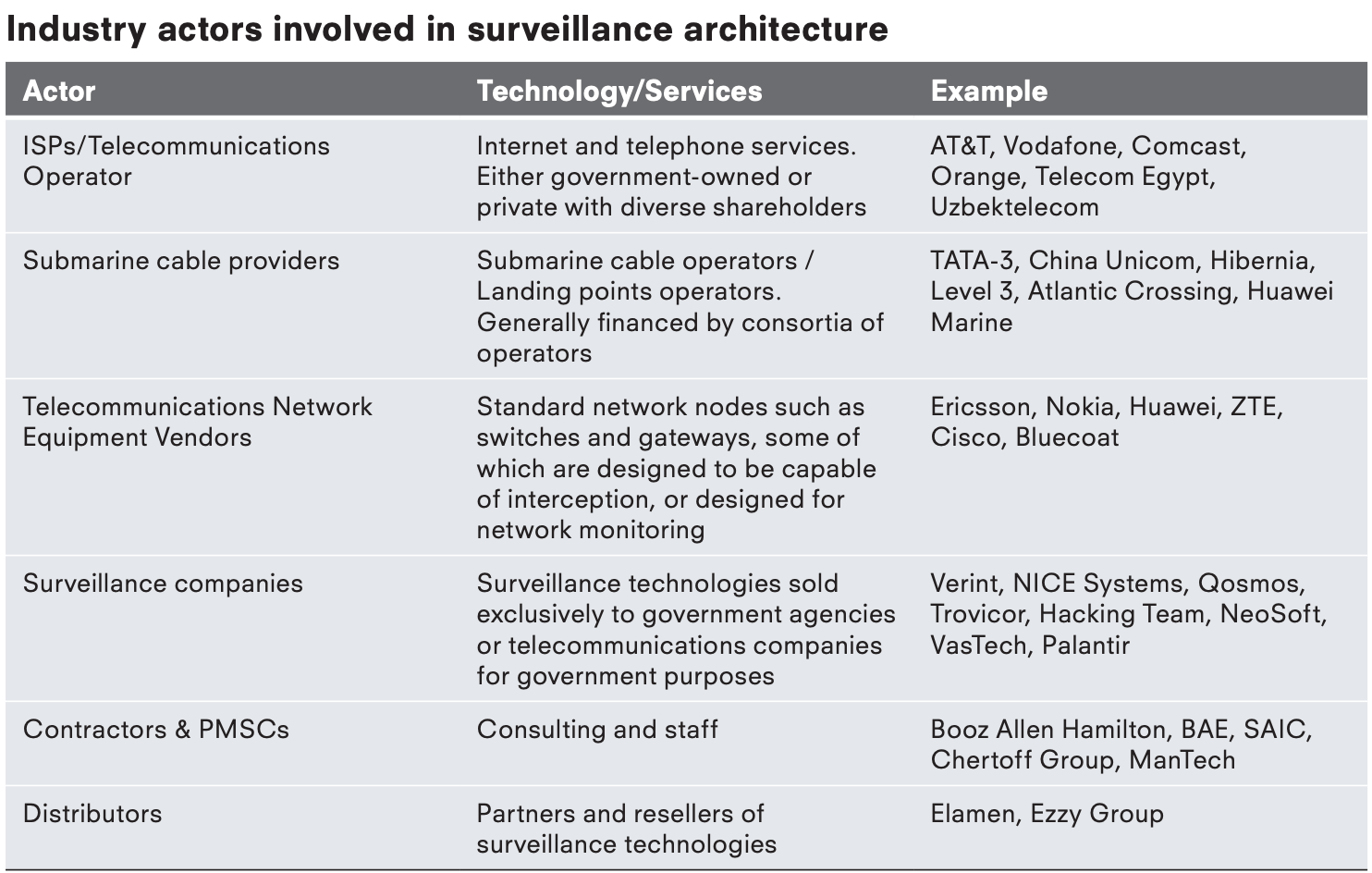 Or this table, featured in the same report which looks at industry actors involved in surveillance.