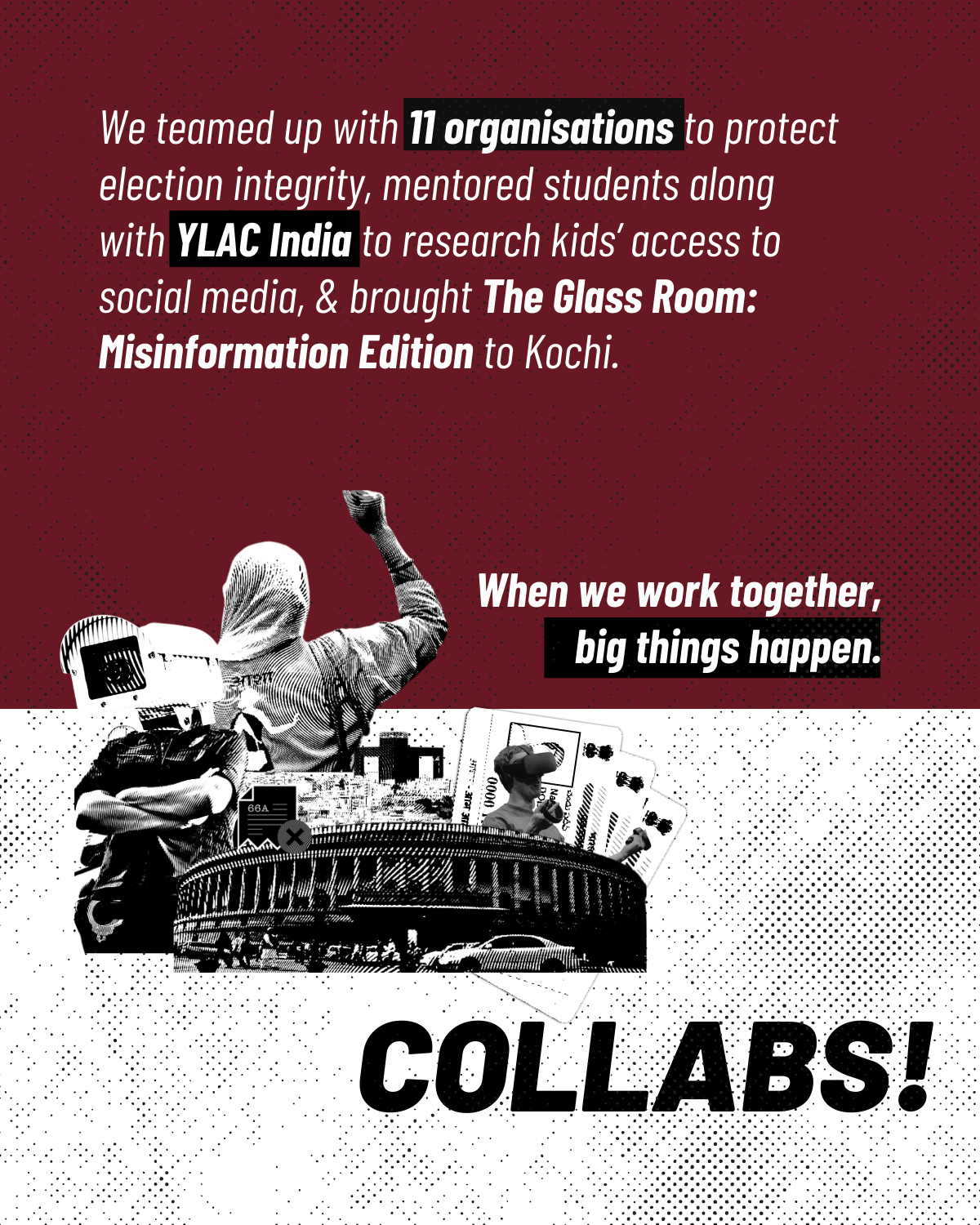 The Glass Room: Misinformation Edition in Kochi: We hosted a 7 day exhibition with TinkerSpace in collaboration with Tactical Tech in Kochi exploring how false information spreads in the digital age & the role each one of us plays through our many clicks, likes, and shares.