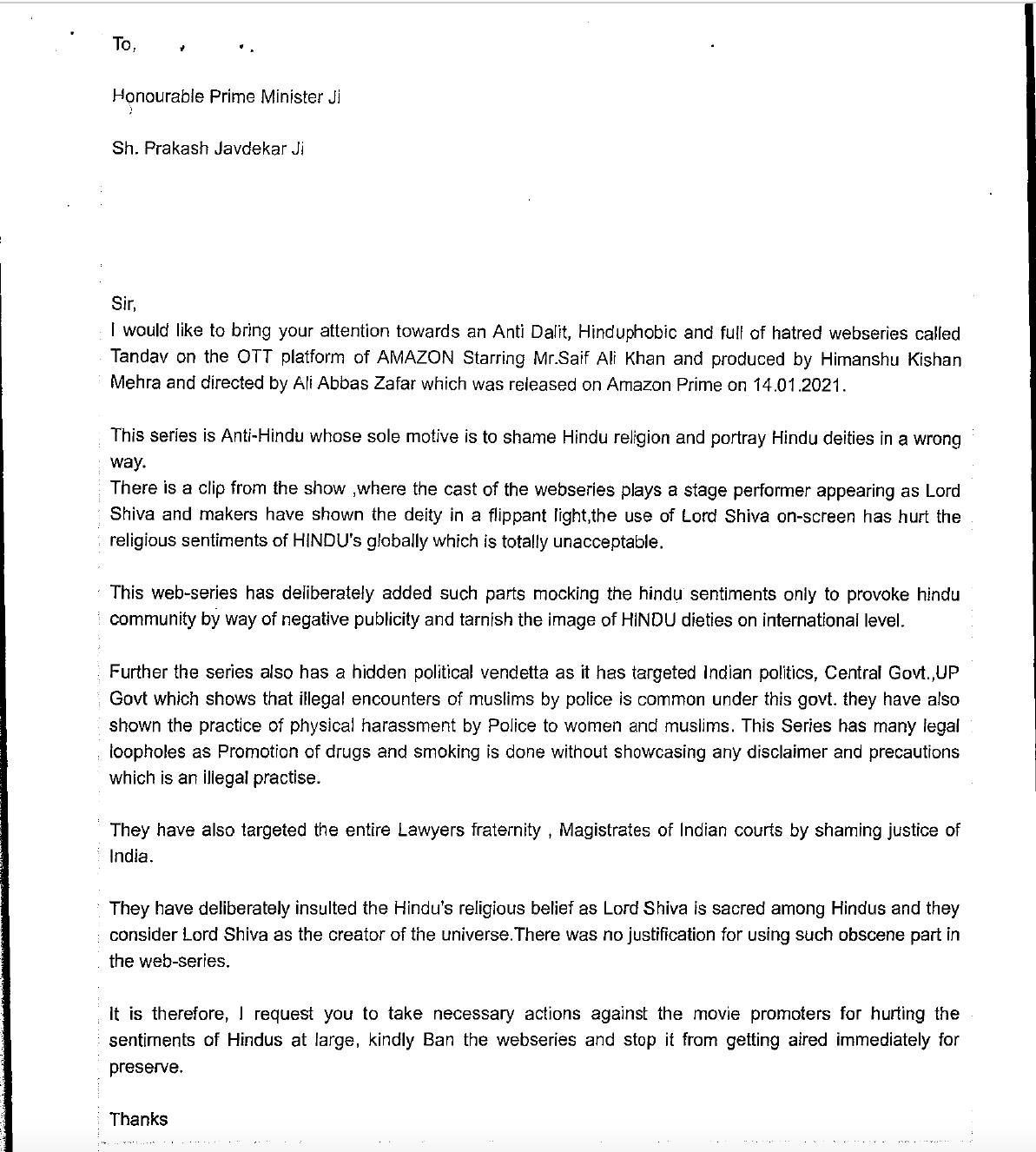 The consolidated document containing all the complaints against the Tandav series sent to us by the Ministry of Information and Broadcasting can be found here. We are sharing this information not only because it is a public issue but also for further academic study.
