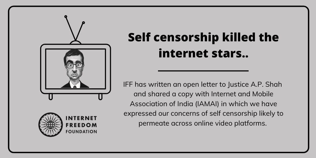 Read our follow up letter to Justice A.P. Shah on self-censorship by Hotstar and the IAMAI’s self regulation code #LetUsChill