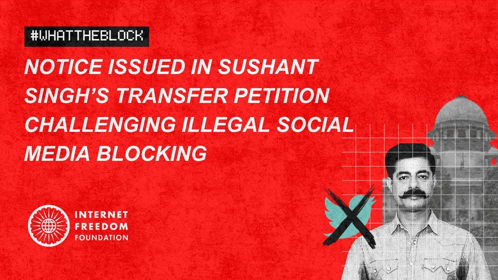 Sushant Singh, an actor and social activist with a verified account on ‘X’ (formerly Twitter) under the handle @sushant_says is seeking the transfer of his Writ Petition from the Bombay High Court to the Supreme Court, challenging Rule 8 and Rule 16 of the Information Technology (Procedure and Safeguards for Blocking for Access of Information by Public) Rules, 2009 (“the 2009 Blocking Rules”). The petition was listed before the Hon’ble Supreme Court on 02.05.2025, which issued notice and tagged it with the pending Writ petition filed by Software Freedom Law Center, India (“SFLC”), challenging the same rules.