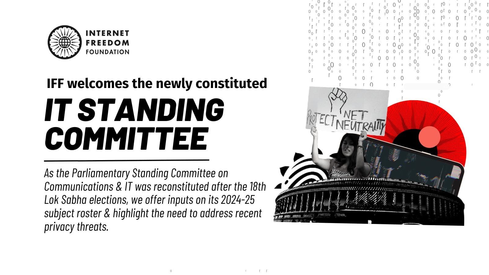 As the Parliamentary Standing Committee on Communications & Information Technology (“Committee” or “IT Standing Committee”) convenes to examine the conduct of business of ministries/departments under its mandate, we write to the Chairperson highlighting our stances and engagement with issues that form part of its subject roster for the year 2024-25. Review and recommendations of the Committee can play a significant role in protecting user interest and safeguarding our informational privacy.