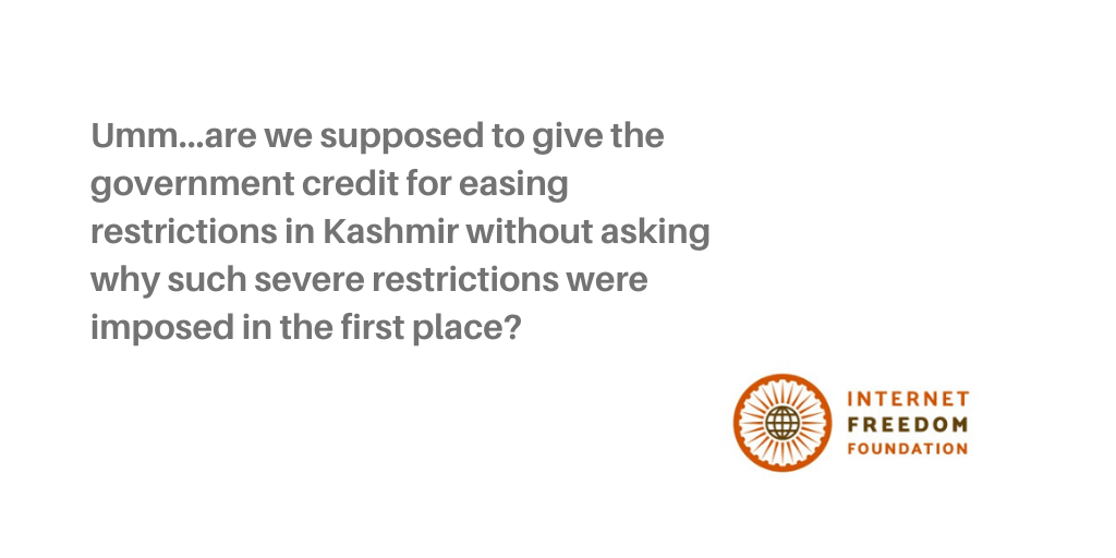 The Solicitor General, Tushar Mehta and Attorney General, KK Venugopal cited historical figures relating to terrorist violence since 1990 and the Supreme Court’s observations in another case about Pakistan supporting terrorist groups like the Hurriyat to establish why these restrictions were required. The government lawyers claimed that terrorists were not just physically penetrating India’s borders but they were also mobilizing people through digital platforms. However, the government did not explain why one to one modes of communication such as landlines and voice calls which cannot be used for mass messaging were shutdown and why the restrictions were not limited to social media platforms.